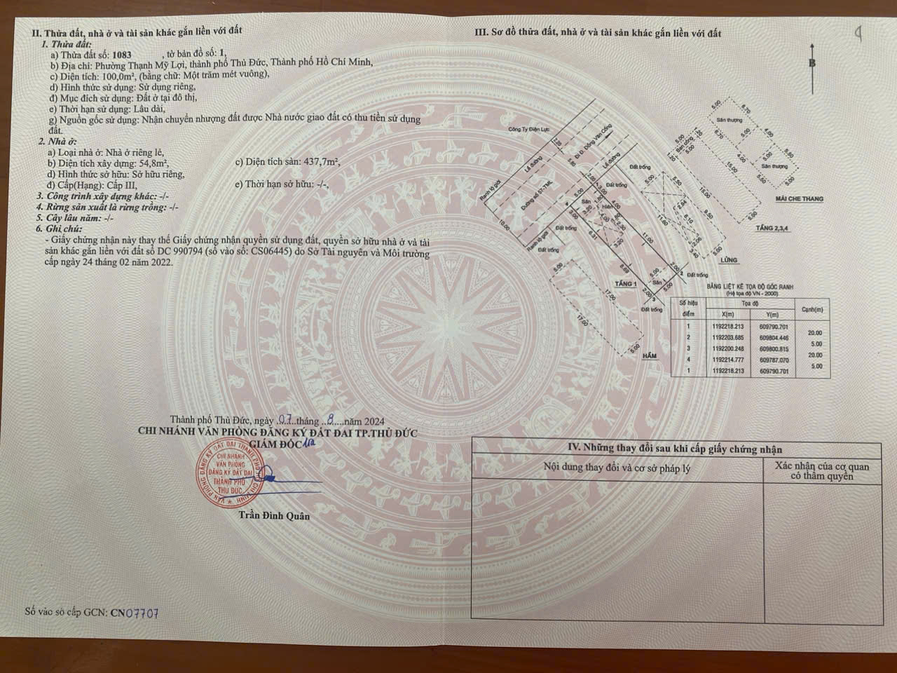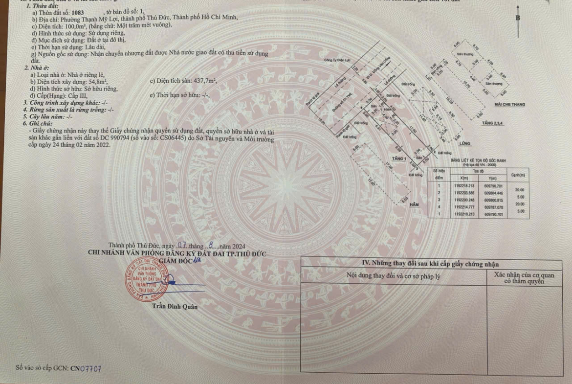 – Địa chỉ : E56 Đường Số 57, P.Thạnh Mỹ Lợi, Quận 2 – Diện tích : 5 x 20m. Công nhận : 100 m2 – Hiện trạng : Hầm + 6 Tầng