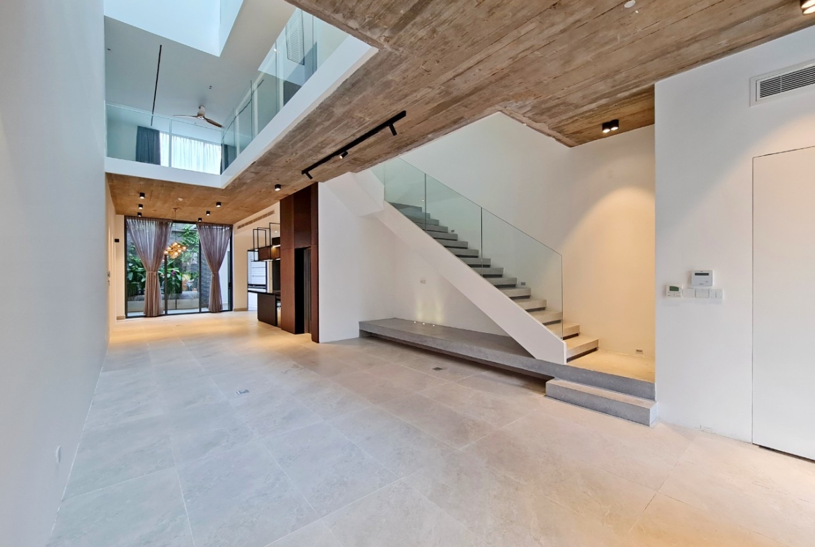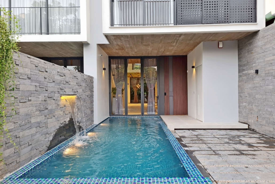 ⚡Kết cấu: Hai lầu, hai phòng khách, bếp mở, bốn phòng ngủ, năm phòng tắm – phòng master rộng có bồn tắm đứng và nằm. Hồ bơi và sân vườn